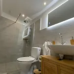 A fürdőszobában van külön WC és zuhanyzó, míg a szobák kávé/teafőzőt, ülősarkot és TV-t biztosítanak.